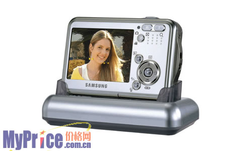 Digimax i5使用3.7V 锂电池,随机附送新型充电系统,使用者随时随地都可以轻松的充电和传送数据。随机配有一个充电底座,无论是在家里或是公司只要把相机放在充电底座上就可以传送图片及充电。