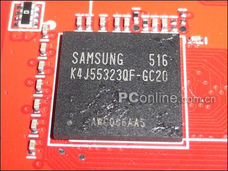 显卡的核心频率为400MHz,在显存方面采用的是Samsung 2.0ns的DDR3显存,128M/128bit。2.0ns的DDR3颗粒的理论运行频率为1000MHz,不过蓝宝石X700黄金版 PCI-E的显存默认频率仅为800MHz,看来这款显卡显存的超频空间还是很大的。