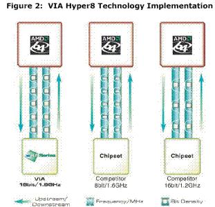 K8T800具备被VIA称为Hyepr-8的技术,这其实就是Hyper Transport技术而已,只是VIA把它换了个名字而已,不过K8T800芯片组支持双向16bit/800Mhz的Hyper Transport传输,也就是说理论最高可以提供6.4GB/s的传输带宽,而其它一些芯片组比如nVIDIA的nForce 3芯片组最高可以支持上行8bit/600MHz,下行的16bit/600MHz的数据传输,最高传输速度仅为3.6GB/s。也就是说K8T800可以完全发挥Hyper Transport的技术优势,这样就使得K8T800芯片组在实际应用中占据一定的优势。