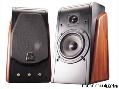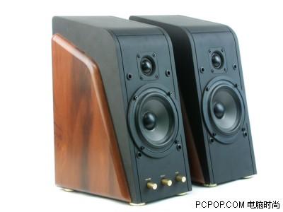 M-200的外观端庄典雅,微带仰角,低音扬声器靠近音箱中部位置,这样可以尽量降低桌面对低音的反射,这种设计适合桌面近声场系统。M-200扬声器均为惠威设计制造,品质勿容置疑,而功放部分则不是惠威的长项,M-200采用LM1875功放IC,最大功率20W每声道,这让M-200的扬声器得不到尽情发挥,也没有采用大功率的变压器,因此此款音箱在动态、低音方面都有所欠缺。