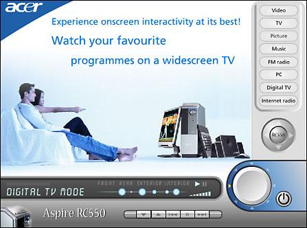 Aspire RC550采用典型的欧洲设计风格,金属黑色外壳结合雅致现代的设计,展现高品质格调且有点缀生活空间的作用。在性能上由于采用支持HT技术的英特尔 Pentium 4 处理器530和全新的915系列芯片组及512M的DDR 400内存,应付目前的主流应用绰绰有余。而且ATI Radeon X300 PCI-Express独立显卡更大幅度提升系统的3D性能与显示效果。配置的8x Super Multi DVD刻录机,支持市面上流行刻录格式,包括DVD±R/RW、CD-R/RW及DVD-RAM等,随时将快乐的视频片断刻录收藏!