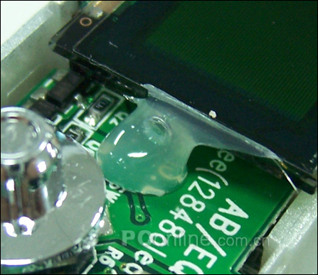 显示屏幕只是用一般的热融胶固定,严重影响稳固性,环境温度稍高就会导致显示屏移位