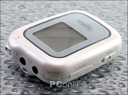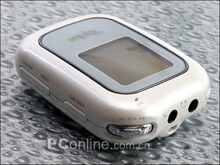 M-1000外观呈不规则的椭圆状,外观尺寸为65.7 (高) × 50 (阔) × 18.5 (厚),含内置锂电池重56克,和目前主流的闪存MP3相比,M-1000显得比较大,身材胖嘟嘟的,非常讨人喜欢。