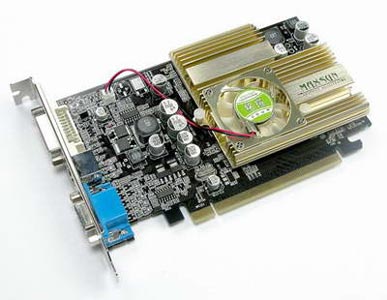 铭?狂镭X550黄金版定位在PCIE普及级图形片市场,图形芯片基于RV370核心,采用惯用黑褐色PCB,内建4条渲染管线,2个顶点着色处理器,核心频率为400MHz。在显存方面,这款产品采用原厂三星显存,速度4ns,显存运行频率500MHz。