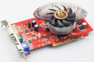 这款技嘉X550极限版显卡采用的ATI最新发布的Radeon X550图形核心,PCB基板以及电容布局完全按照ATi 的公版设计。这款显卡的散热器比较有特色,风扇为技嘉原厂设计,鱼翅状的扇叶,将主要的散热表面移到一边,这样的设计有利于消除GPU晶体上面的散热盲点,利于解决超频过程中,核心发热量大的问题。