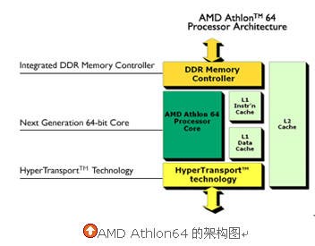在K8的处理器架构中,将原本内建于北桥芯片的内存控制器部份,转移到处理器身上,这样一来内存的规格便建立在使用的处理器上,而不是决定在芯片组身上了!