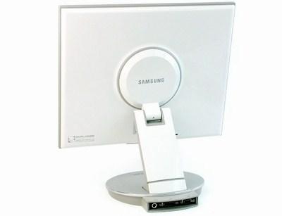 三星173P+ 的外形与173P 相同,也采用了双轴底座设计,屏幕除了可以上下移动之外,还可以180°旋转。值得一提的是,173P+ 面板上只能看到电源开关而没有任何OSD 按键,所有的调节都是通过鼠标完成?这也曾经是173P的一大卖点,即MagicTune 功能,利用软件来完成对显示器各项参数的调节。不过这项功能目前获得的评价褒贬不一,有人认为鼠标操作可以更快捷,而有人则抱怨说在FPS 游戏中要想调节显示器异常麻烦。另外,173P+ 的电源开关采用了触感式设计,而长触电源开关3 秒则是图像的自动调节,这项设计也是173P+ 人性化方面的重要卖点。