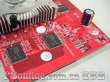 显卡采用核心和显存独立供电设计,用料和做工还算不错,采用了高品质红宝石电容,为显卡的稳定运行提供了保证。接口部分,提供了DVI、TV-OUT和VGA全接口。