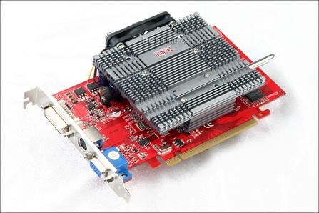 散热器搭配方面只是采用开放式放射状铝质散热器,运行时候噪音不大,接口方面则是标准的VGA、DVI和S-Video输出。