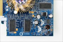 RadeonX600Pro采用的是采用0.13微米工艺制造的RV380核心,大概超频幅度跟采用0.11微米工艺制造的RV370XT(X550)差不多,显存方面技嘉搭配Hynix 3.3ns TSOP封装显存,默认频率600Mhz。