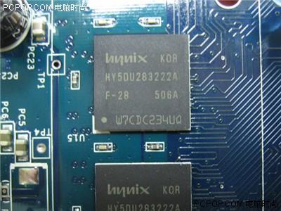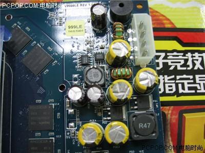 由于核心耗电量较高,AGP接口已经不能满足显卡的供电,所以显卡需要一个外接供电,从图片中我们能看一个大4PIN电源接口。显存方面,华硕6800LE采用了使用MBGA封装DDR显存颗粒,显存默认工作频率为700MHz,带宽22.4GB/s。正面8颗显存颗粒,组成128MB,256BIT显存规格。