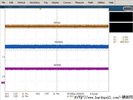 下面我们来看一下专业软件测试的成绩,从根本上看一下高品质显卡和低品质显卡的电气性能到底有多大差别。测试方法是在开启专业测试软件的同时进行3DMark03的测试,然后观察显卡的电压波动曲线。(在这里我们要感谢台湾大学的朋友jason,他利用学校的单片机专用仪器完成了这次测试,提供给了我们第一手资料)