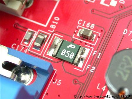 显卡上一些小细节也不能忽视,比如下面我们所要提及到的保险电路元件。在显卡上使用保险电路元件目的是为了当电流超过保险值时自动熔断,以起到保护显卡的目的,而这种保险组建分为不可回复式和可回复式两种。