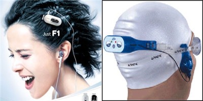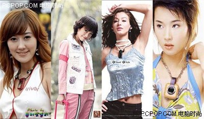 这款三星MP3模型沦为公模,有一点不明白,戴在头发上舒服么?女孩子们都希望头发能飘逸一些吧。后面这种戴法就更少见了,完全是出于创意,有几个人会在游泳的时候听音乐?