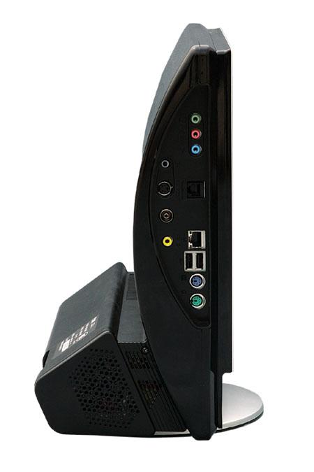 这款QBOX整机质量为10千克,尺寸仅仅为15英寸液晶大小,后板突出的部分也控制得相当不错,看来这款机器的设计制造还是颇见功夫的。这使得我们想起了苹果机,不过其造型要美观的多。