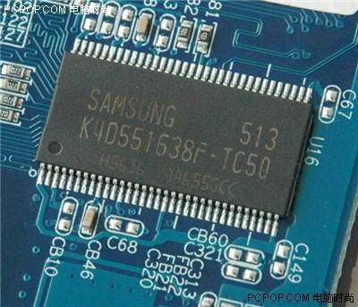 采用名牌三星显存颗粒,正反共8片等间距排列,构成128MB显存容量。显卡具有非常成熟的设计,核心和显存采用分离供电设计,这种设计保证耗电量较大的配件得到足够的电流供应,从而提高核心、显存的超频潜力。