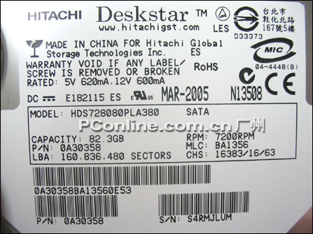 日立 HDS728080PLA380,新天下科技有限公司代理,三年免费质保,SATA2接口硬盘具有以下5个主要特点,3Gbit/s高速传输速率;Native Command Queuing(NCQ)本地指令列队;Enclosure Management;Port Multiplier连接埠倍增器,主板配备Port Multiplier连接埠倍增器可以连接更多的SATA2硬盘;可升级到SAS。