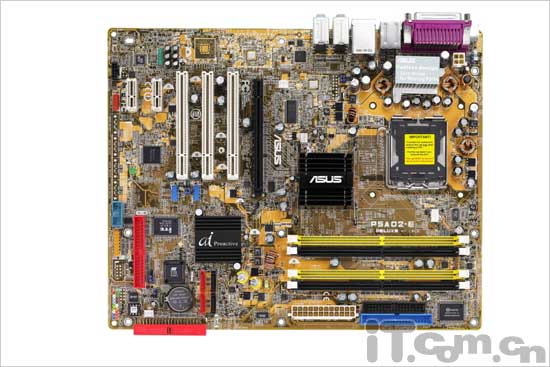 主板采用了黄色的PCB板,做工非常的扎实,华硕对于板型、做工及走线及一些小细节一向都是非常的重视。主板采用了I925XE的北桥芯片,可以支持最新的LGA775架构的Pentium 4处理器,前端总线高达1066MHz,主板采用3个PCI接口、1个PCIe 16X等接口等。这款主板支持DDR2 533双通道,主板一个有4条内存插槽,最大支持4GB的内存。特别指出据了解华硕工程师成功解决内存支持频率的问题,使这款P5AD2-E Deluxe主板可以真正支持DDR2 711,消除处理器与内存之间的瓶颈,也为那些追求极限性能的用户提供了更好的选择,是否真是如此就要靠那些消费者去实践看看了。这款主板在处理器的供电设计中只设计有三相式供电回路设计,不过还好华硕在用料上一向毫不怜惜,在周围采用多颗高品质的直立电容加以辅助,应该能使处理器运行得到保证。