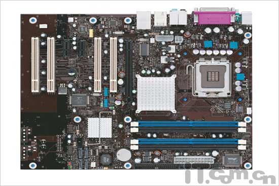介绍了这么多款基于I925XE芯片组的主板,Intel原厂925XE主板D925XECV2自然也是不可错过,在与高性能的处理器的配合上原厂主板似乎更占优势。它采用黑色的PCB板,标准的ATX板型设计,银色的散热片在主板中间十分显眼。采用Intel高级性能架构特性的I925XE芯片组,并含有Intel矩阵存储技术,可支持LGA 775架构的Pentium 4 Prescott处理器,支持1066MHz前端总线和超线程技术。主板提供了四根240pin DIMM插槽支持双通道DDR2 400/533,最高可以支持4GB内存容量。另外主板上还设计有1个PCIe 16X和2个PCIe 1X插槽以及4个PCI插槽。