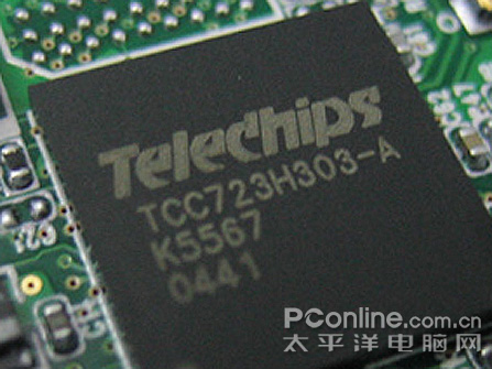 TCC72*包括720、721、722、723多款型号,最为普及的是TCC723。TCC723采用BGA封装,集成度高,面积只有10mm×10mm,内置32位元的ARM9 RISC处理器(CPU),内置程序及数据RAM,最高主频可以达到120MHZ,音频/视频都是用软件作编解码,它采用了足够容量的NOR Flash,以封闭式的方式来储存系统软件,保证软件稳定运行,并且可以开发诸如HOST(主机)等先进功能,提供了18mW(16 Ohm)强劲输出功率,保证足够的推力,同时支持MP3直录,总体特点是系统响应速度快,性能稳定,功能丰富等特点,不过音质表现不算十分突出,另外传输接口为2.0全速,速度一般。