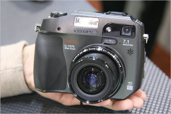 C7070是C8080的简化版本,内设TruePic TURBO图像处理器,采用的是一块1/1.8英寸、710万有效像素的CCD,其镜头部分则选用的是包含两枚非球面镜片和一枚ED镜片的4倍光学变焦镜头,其中,焦距相当于35mm传统相机的27mm-110mm,最大光圈F2.8(广角端)-F4.8(长焦端),全程最小光圈为F8.0,16-1/4000秒快门,并配有专业直方图显示,另外在超微距模式下,该款C7070最近摄影距离更可达到1mm。特别值得一提的是27mm的广角,它的自动调焦目标选择系统的功能是该机的一个特色。C7070背面的液晶显示屏依然可以进行多角度变换,它可以轻而易举的上翻180度和水平旋转270度进行观看或拍摄,多角度液晶显示屏令用户操作更得心应手。存储介质方面,C7070采用的是双存储槽设计,不过大多数都会选择价廉物美的CF卡。