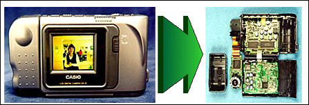 1995年3月10日卡西欧推出的 QV-10,是世界上第一款真正意义上的数码相机,也是第一台搭载彩色液晶屏幕的数码相机。QV-10搭载1/5英寸的25万像素CCD,镜头可以旋转270°,而机身背后配置着1.8英寸的 TFT液晶屏幕,储存卡大小为2M,可以储存96张照片,可将拍摄好的影像传送到个人计算机或电视中。可以看出,这款数码相机包含了现今数码相机的各种基本概念,很多基本的理念在现在的数码相机上依然还有所保留。而作为数码相机的开山鼻祖,它在推出之后马上引起市场的轰动,当时的售价为65000日元,而它在当年也达到了销售 20 万台的纪录。卡西欧QV-10的问世,也正式宣告了数码相机正式诞生。