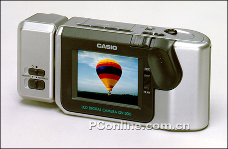 1996年11月,CASIO推出了一款极具创新设计的数码相机QV-300,这款QV-300采用了可旋转式镜头,已经开始具备现代机身设计的雏形。它还首次内置一个2.3倍光学变焦镜头,焦距为47-106mm (相当于35mm相机),内置36万象素的CCD、2.5英寸的液晶屏。另外还有4MB 的记忆卡,照片的解析度最大可达640×480像素,这个在当时来说已经是相当不错了。而这款可变焦数码相机的推出也为后来长焦数码相机的推出打响了第一炮,被认为是长焦数码相机的始祖。