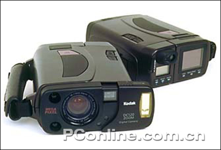 1997 年,柯达推出了全球第一款超百万像素的商用数码相机DC120,从此数码相机的成像效果得到了解放。同时,DC120也是世界上第一款“一按即可”的数码相机。DC120当时采用2倍的光学变焦镜头,另外还有3倍的数码变焦,配备2M的CF储存卡,照片的分辨律最大可达1280 x 960。这台数码相机也有一个1.6英寸TFT彩色LCD显示屏,不过机身的重量达到520g,机身尺寸为146×108×55mm,目前消费级数码相机已经很难看到类似 DC120 这样的笨重设计,不过当时对这种类似传统相机的重量和手感还是感到很满意的,柯达之后推出的数码相机在体积和便携式方面都有了进步,比如随后的 DC4800 以及 EasyShare 系列产品。而随着外观设计的改善,柯达数码相机在操控性能方面的表现更加突出。