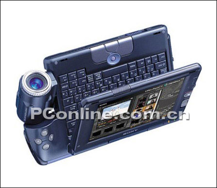 这里还有一段插曲,在99年索尼所推出的PCG-GT1笔记本中,居然内置了一个可以实现光学变焦的摄像头,而且外形极像数码相机中的“大炮”(长焦),其摄像头采用了与索尼数码相机一样的蔡司专业镜头,支持10倍光学和4倍数码变焦,并且摄像头可以前后作180度的转动,随时随地都可以把这台笔记本变成一部传统的摄像机。采用1/4英寸68万像素CCD,更让人感到诧异的是它还具备电子防振动功能。虽然在象素方面还有所欠缺,不过其变焦能力甚至超越了当时的专业数码相机,成为当时真正的“炮王”。