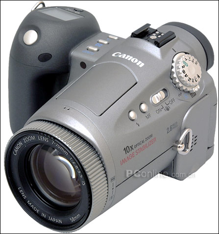 2001年,佳能公司终于发布了其第一款具有10 倍光学变焦数码相机的Pro90 IS,这令高倍变焦的数码相机市场竞争逐渐激烈。PowerShot Pro90 IS最大的特点就是它的镜头十分庞大,看上去甚至觉得是相机是缩进镜头里一样,十三片十组镜片的镜头可实现十倍光学变焦(相当于35mm制式的37-370mm),再配上2倍或4倍的数字变焦,可实现最大40倍的变焦(相当于35mm制式的1480mm)。而为了减少长焦拍摄时相机抖动而产生的影像模糊,PowerShot Pro90 IS专门设置了光学影像稳定系统。另外,Pro90 IS的另一个亮点就是采用了1.8英寸低温多晶硅TFT可旋转液晶屏,可作270度灵活调较,使你在任何角度都可以拍摄自如。但是因为长焦关系,当时此款机器只有260万像素。
