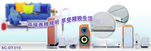 SC-DT310主机由各自独立的DVD机和功放组成。外观设计花足心思,略带上下弧度线的超薄机身展现出柔美的风格,哑光的机顶更让人感受到时尚气息。DVD机与功放之间有一扁平电缆相连,用作电源供应、控制和模拟音频传输。可读碟片包括:DVD-RAM、DVD-A、DVD-V、DVD-R、VCD、CD、CD-R/RW、WMA、MP3、JPEG,DVD-A的播放是本套系统的一大特色。