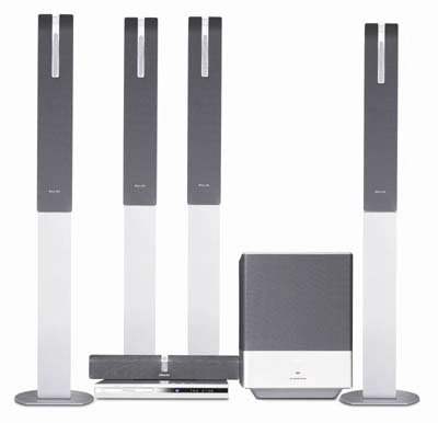 飞利浦LX8500迷你家庭影院,采用先进的视听科技,修长、灵动的四只锥形音箱搭配小巧的中置,敦厚的超低音音箱(带功放)和精致DVD主机,错落有致、赏心悦目。