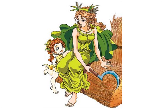 德墨忒尔狄蜜忒:(罗马又称席瑞斯Ceres)Demeter,和土地有紧密关联的女神,谷物之神,?收女神。