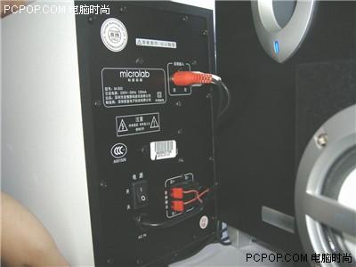 低音箱的后板设计简洁是麦博的一贯风格。M-500后板设计的一样简单合理,有电源开关,音频输入口,注意事项和电源铭牌及3C的认证标。