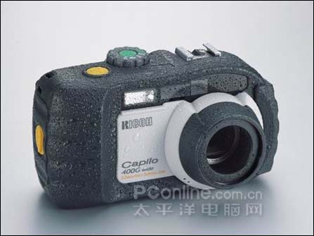 Caplio 400 G wide 是 Caplio 300 G 的升级产品,在外观上和性能上都没有太大的改变。使用了 1/2.7 寸 324 万象素的CCD感光元件,采用能够进行 3 倍光学变焦镜头,最大支持 2048 × 1536 象素的图片和 320 × 240 象素 120 秒长的动画。使用 SD 和 MMC 卡存储数据,电源系统是通过碱性电池和专用锂子电池组合实现的。最大的特点就是与 300G 相比,提供了更大的广角,折合 35mm 标准镜头的话,这款相机的广角端焦距相当于 28mm ,这已经是一个入门级别的广角镜头了,这对于“三防”DC来讲是十分不容易的(既要性能又要“三防”?)。
