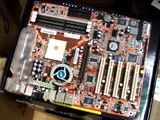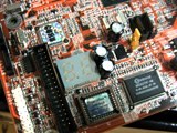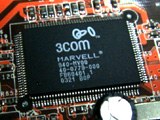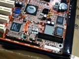 只看看升技整块主板上密密麻麻的贴片元件以及芯片,就知道该款主板的性能不可小视。该款主板采用K8T800+VIA 8237南桥,支持FSB 800MHz的AMD Athlon64处理器、DDR400内存、AGP8X,具备USB2.0以及IEEE1394接口。除此之外,该款主板板载了3COM千兆网络芯片,通过8237南桥和Silicon Image 3114芯片配合,为其提供了6个ATA硬盘接口,同时支持Raid功能,采用ALC658音频芯片,支持光纤输出和6声道AC‘97。