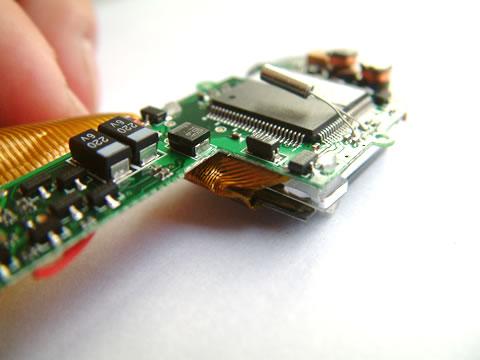 除了上面的之外,其实在一些细节上也存在问题。首先就是预留给排线空间不足,大家可以看见,屏幕和PCB板连接的排线已经因为外力的原因而开始变形,存在出故障的隐患,长久使用后屏幕有可能会出现问题。
