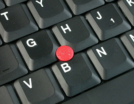 把IBM笔记本和《小红帽》联系到一起我想是最合理的,IBM笔记本特有的“小红帽”设计已经成为了一个经典之作。这款T42也不例外,键盘中央的“小红帽”分外醒目。其实“小红帽”就是一个鼠标,使用起来非常方便,不仅能够让光标在显示屏上移动自如,而且定位也非常精确。