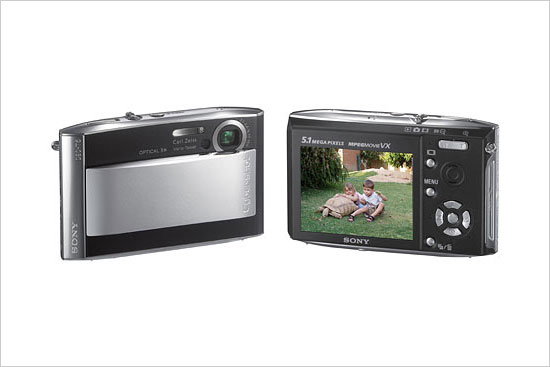 继T7之后索尼再次为白领们奉献一款非常时尚的数码相机DSC-T5。多彩的机身,大胆的外形设计,简约的结构,无一不吸引着我们的眼球。在全球最薄的T7之后,T5的上市让时尚女性白领们有了更多的选择。1/2.5英寸Super HAD CCD,有效象素达到500万。3倍光学变焦,焦距38-114mm(35mm传统相机等效值),最大光圈范围F3.5-F4.4的镜头依然延续了潜望镜式设计,大大节约了重量和体积。8cm的微距非常犀利,效果不错。在快门方面,有自动的1/8 - 1/1000秒和程序1 - 1/1000秒2种模式,通过对ISO的切换和曝光补偿的控制,一样能够达到良好的夜景拍摄效果。2.5英寸LCD,像素高达23万,绝对的高品质画面。113g的重量不会成为MM们外出的负担,不到3000元的市场价格能买到这样的时尚精品,快行动吧!