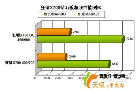 本周来自铭?的一款狂镭X700钻石版,实实在在的让我们在超频上爽了一把,其中值得称道的DDR3英飞凌的显存颗粒,强悍的热管散热工艺,让其性能提升达到15%,是目前市场上X700系列中新的超频王。预计狂镭X700钻石版将是PCIE市场上最火热的X700产品之一。