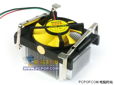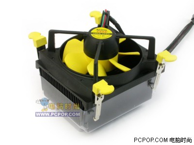 九州风神的亚历山大最高能支持到P4 478针的2.8CGHZ,以及赛扬D 2.8GHz。外观设计上仍然沿用了九州风神传统的样式,散热片使用了铝制材料,不过因为风扇比较强劲,因此散热能力还是有保障的。鳍片的顶端加工为尖凸状,有助气流的流通。扣具采用卡簧设计,扣具中端有反扣的弹子,能起到压紧散热片的作用。