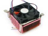 阿波罗采用纯铜散热片,鳍片有44片之多,重达424.5g。鳍片非常薄,间距比较平均,做工精细。散热器的底部结合面比较光滑,散热鳍片和底部结合面之间采用回流焊的制作工艺,使底部结合面的热量能有效传至散热鳍片。散热器的风扇采用70mm×70mm×20mm风扇,能以较低的转速满足CPU的散热要求,散热器噪音仅为28dB。综合性能和价格,阿波罗是一款性价比较好的产品。