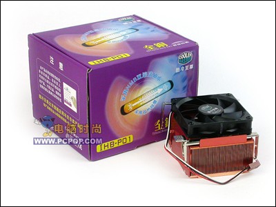 IHB-P01采用的全铜散热片+热管的配置,最高可以支持到P4 Prescott 3.8GHz以及P4 NorthWood和P4 Celeron D全系列处理器。中间两根热管贯穿整个散热器,搭配全铜高密度Stacked fin散热鳍片焊接技术,具有导热效率高,散热面积大等特点,效能卓越。IHB-P01搭配了一款NMB的双滚珠轴承风扇,规格为70mm×70mm×15mm,工作电流0.19A,转速在3000RPM左右。扣具方面IHB-P01也是采用了人性化设计,用户只要将散热器放入CPU支架内,将两个扣具挂钩对称牢固扣入支架内的方孔上,用力按下另一端即可轻松完成。