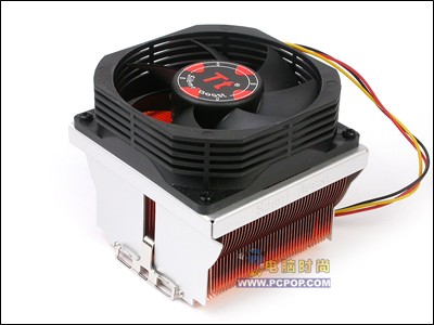 火山10A采用全铜散热器,整个散热器做工非常精细,鳍片薄而密,数量达41片,从而大大增加了有效散热面积,整齐而均匀的鳍片保障了气流在鳍片间的流通性。成熟的回流焊工艺也使得散热鳍片与底部结合面之间有更好地连接,大大减小了热阻。大口径80mm×80mm×25mm单滚珠风扇非常独特,采用TT专有“五面进风”风扇,这项设计使得上方和四面都能进风,即增大了风量,也在很大程度上减小了噪音。火山10A的扣具是使用不锈钢制造的三位扣具,使用起来较轻松,扣具的力度也适中。