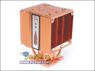 Mini Tower采用了3根U型热管和多达40片的鳍片,使得这款散热器的个头非常大,由于其传热的能力非常强,因此,只需要使用机箱上的风扇或电源上的风扇就可以使其将处理器的热量带走。适用于多平台的散热器,支持目前主流的Intel P4 775 Prescoott 3.6GHz、Intel P4 478 Prescott 3.6GHz、AMD Athlon 64/Athlon 64 FX以及AMD Athlon XP 3400+等处理器。