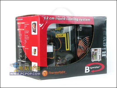 BigWater支持Intel LGA775以及Socket 478 P4、AMD的K7, K8,是一款全平台的散热产品。套件中的换热器,体积为122mm×35mm×166 mm,属于一款12cm规格的换热器。这款水冷头采用了时尚的半透明设计,下半部分是采用压铸工艺的全铜基座,并且相当有分量。全铜基座底部与CPU接触的表面,打磨得相当光滑。BigWater的附件众多,其中一瓶绿色的UV荧光水,它可以让整套水冷系统看起来更加漂亮。