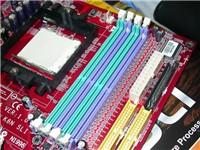 微星主板配备了4个DIMM内存插槽,可以支持高达4GB大容量的双管道DDR400内存。DIMM内存插槽有两种颜色,其中颜色相同的为一组通道。还提供了3个普通的PCI接口,以及2个支持ATA133的UDMA接口。
