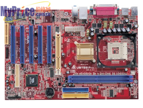 U8798 Pro是映泰专为DIY用户设计的主板,应用了映泰特有的火红色PCB底板,采用标准ATX大板架构,各插槽色彩鲜明,整齐有序的名牌电容电阻,清晰的蛇形布线,显得较为大气;采用VIA P4X400+VT8235芯片组,支持FSB533/400MHz,最高可以支持Intel 3.06G超线程处理器。