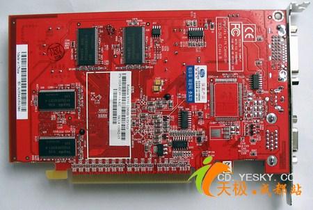 蓝宝石X550搭载了现代TSOP封装DDR 4纳秒显存,正反各四颗,组成了128MB/128bit显存规格,显存的默认频率为500MHz。 此外,产品提供了VGA/DVI/TV-OUT三种接口。