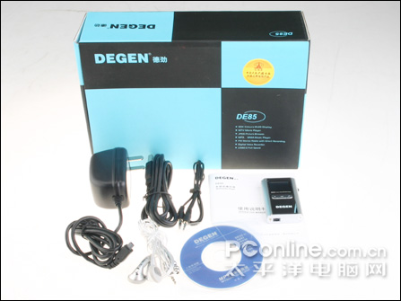德劲DE85的附件共有6件,包括:驱动光盘,说明书,耳机,USB连接线,直录线,电源适配器。